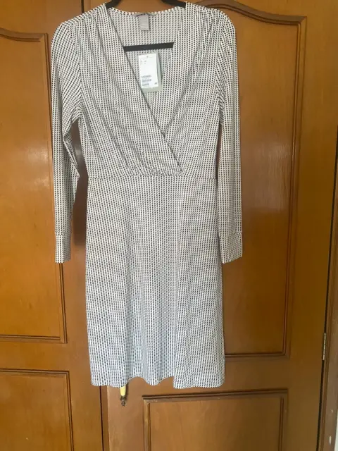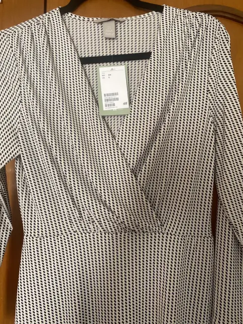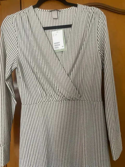 Vestido Nuevo H&M. Hermoso vestido nuevo, tela fluida , con spandex , frente cruzado lo que hace que tu escote luzca a tu gusto , pliegues en hombros y en la parte de atrás que favorecen la figura ocultando gorditos , termina en línea A. Manga larga con puños . Mide de largo 100cm. Luce tal cual fotos, pregunta cualquier duda.