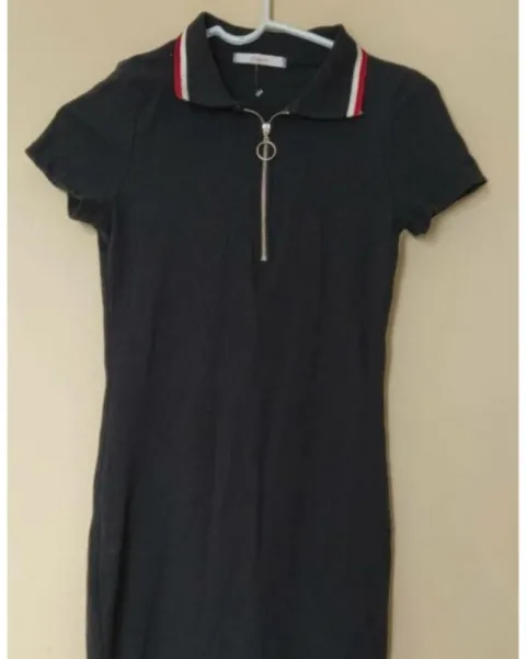 Vestido nuevo juvenil, color negro con 2 líneas de colores en el cuello y cierre en el frente.