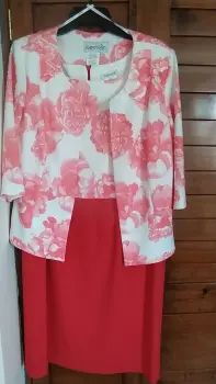 Vestido Nuevo sin etiquetaMarca Karen KeinColor Coral y Blanco estampadoVestido win manga, con SacoTalla 34
