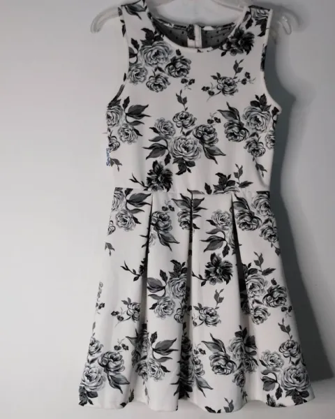 Vestido nuevo blanco con negro. Estampado de flores con cierre lateral y forro en la parte de la falda, encaje en la parte de la espalda.