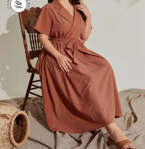 Vestido Nuevo Shein Talla 4XL de Algodón. Vestido Nuevo de Algodón Color Café Talla 4xl Marca Shein Largo de Manga Corta con Cinto*Se puede hacer un paquete con varias prendas para pagar un solo envío*La Ropa de Shein no trae etiquetas, viene en bolsa