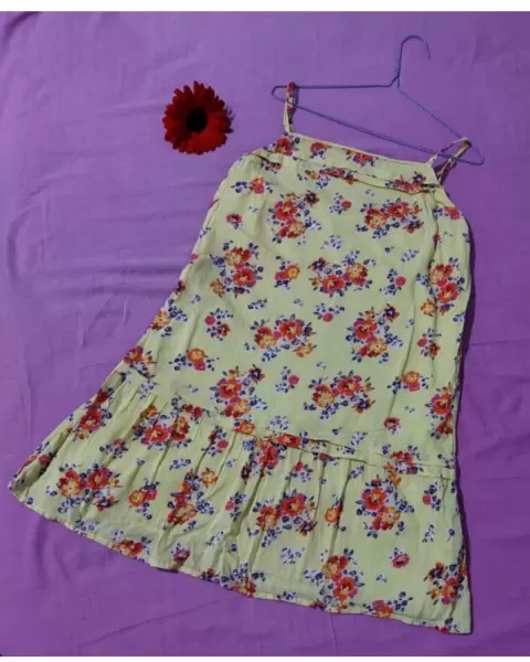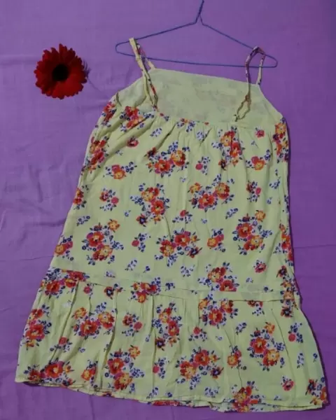 Vestido amarillo de flores, muy lindo y cómodo. Es un poco suelto por lo cual es fresco.