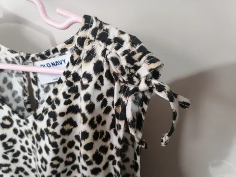 Vestido oldnavy niña. Vestido de animal print old Navy con resorte que enmarca la cintura y cinta ajustable en los hombros.