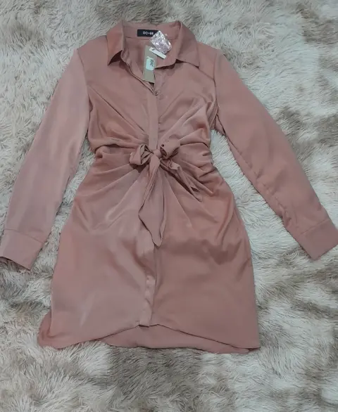 Hermoso vestido nuevo , palo de rosa , talla mediano , corto y de mangas largas , no estira y la tela es tipo satinada , muy elegante