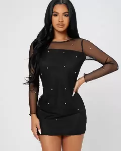 Vestido panel con malla con cuenta de perla. SHEIN PETITE Vestido panel con malla con cuenta de perla talla petite S