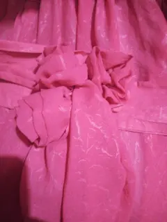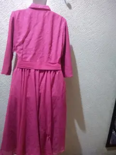 Vestido para cóctel súper cómodo,. Tela satinada delgadaCinturón con flores ForroSin marca Ya q yo compré la tela y loande hacer para usarlo en los xv de mi hija.Uso una vez La tela es de excelente calidadSe puede lavar en casa No necesita planchar seNo sé arrugaSon telas importadas