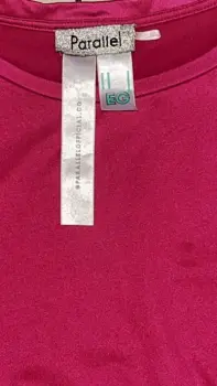 Este vestido esta hermoso, es de un color rosa fusia, tela sedosa al tacto, super suave y fresca, marca parallel official, talla EG