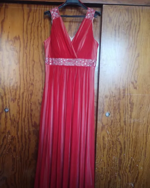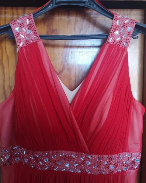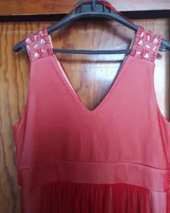 Vestido para fiesta. Vestido para fiesta color rojo con pedrería en tirantes y parte baja del busto