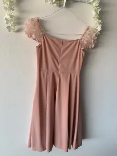 Hermoso vestido de fiesta para adolescentes, tiene un detalle en mangas padrísimo, son de tul y trae florecitas, ajusta perfecto!!