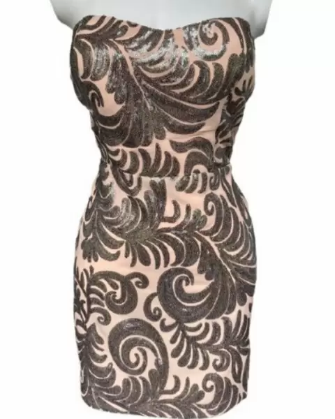 Hermoso vestido 😍 para fiesta corto 😍 con lentejuelas en excelente condiciones... Color melón ..