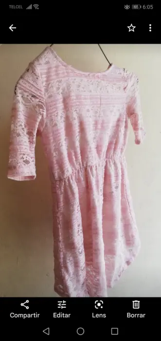 Vestido de encaje color rosa palo de niña talla 8, caída en V con manga, ideal para cualquier evento.