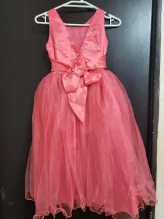Hermoso vestido talla 6, en color rosa con detalles de lentejuela y flores de adorno. Queda precioso 🥰