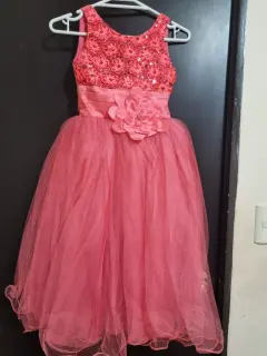 Vestido para niña de fiesta. Hermoso vestido talla 6, en color rosa con detalles de lentejuela y flores de adorno. Queda precioso 🥰