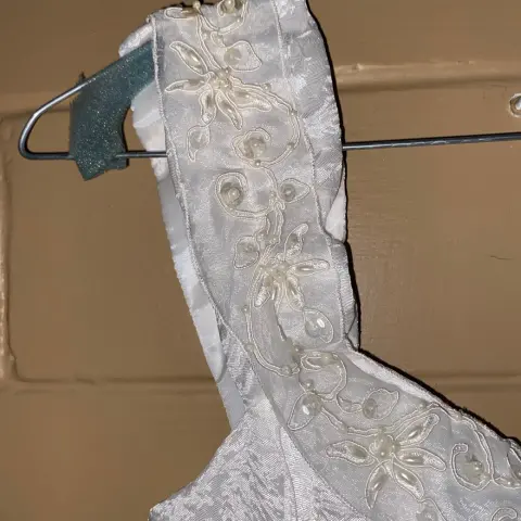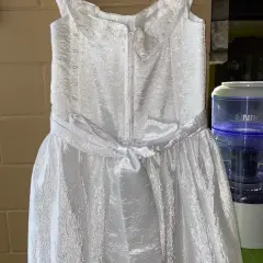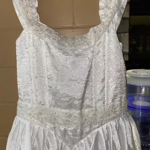 Vestido para primera comunión. Vestido blanco para primera comunión. ✝️Solo se usó una vez.Se llevó a la tintorería. 🫧100%poliester.Vestido de tirantes con pedrería y tipo corsé con falda medio plisada y textura rugosa. 👗Talla de 10-12Precio negociable. 🤑