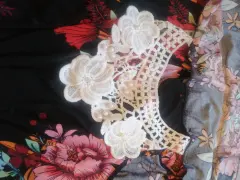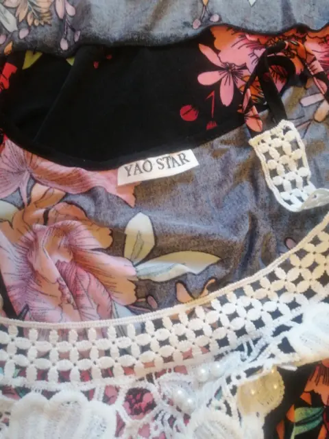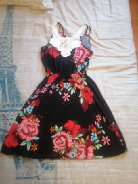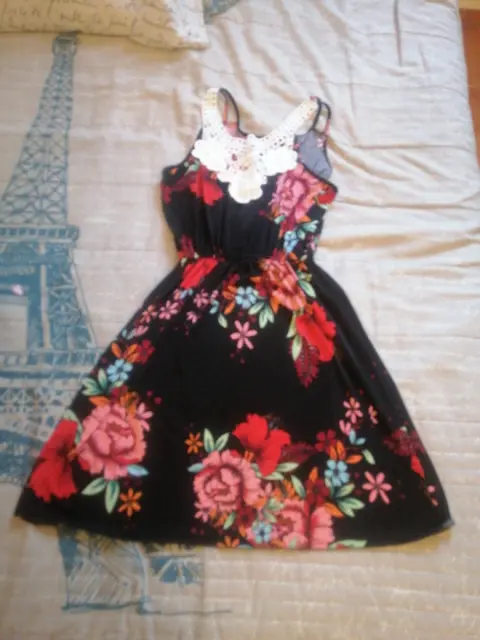 Vestido negro playero corto, muy fresco con flores en el cuello sin mangas unitalla da a una talla mediana nuevo sin etiqueta
