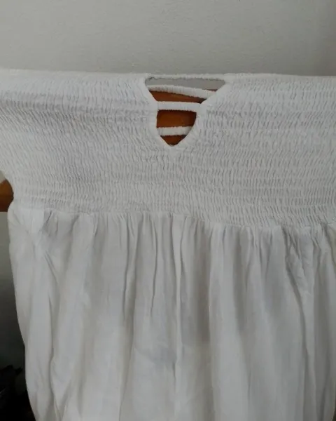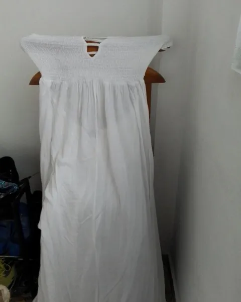 Vestido de algodón o rayón largo cómodo la parte de atrás trae los elásticos delgados que puesto la espalda luce espectacular,puede quedarle a talla grande.