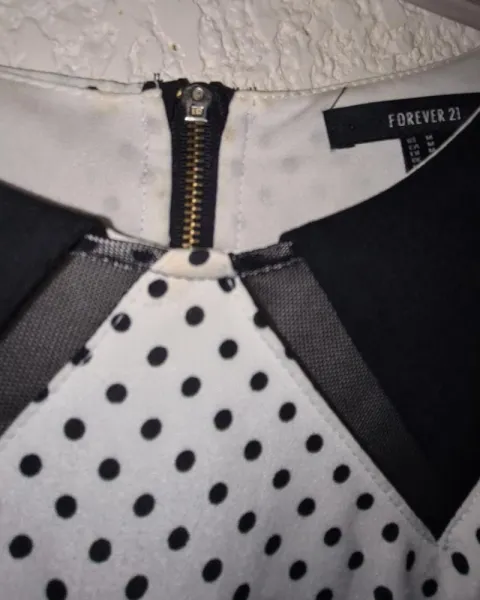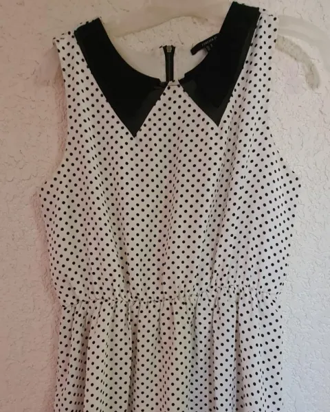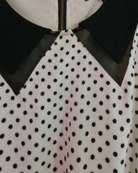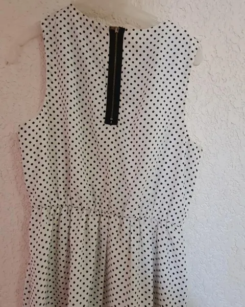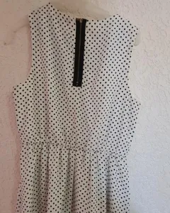 Vestido polka dots. Vestido color blanco con puntos negros y lindo cuello, sin mangas. Cintura 70 cm pero tiene resorte, se ajusta, pecho 90 cm corte arriba de la rodilla