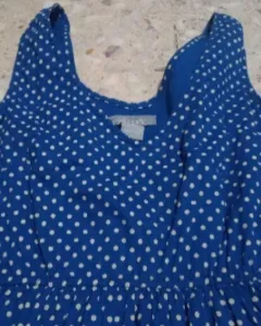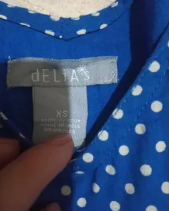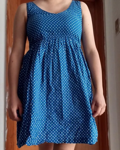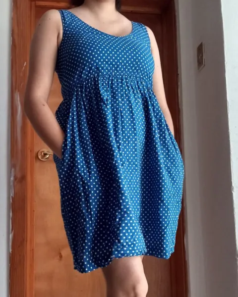 Vestido polka dots. Con resorte en la parte baja del busto,con bolsas a los costados y forro dice XS pero también da a un S100% algodón