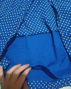 Con resorte en la parte baja del busto,con bolsas a los costados y forro dice XS pero también da a un S100% algodón