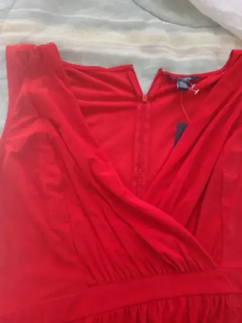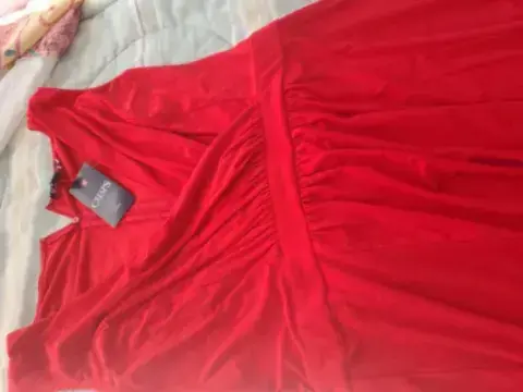 Vestido nuevo marca Chap talla L. De tela elástica y muy fresca. Es midi, con escote en V envolvente . Cierre trasero. Medidas hombros 41 cm, pecho 94 cm, cintura 84cm.El color es rojo carmín, más intenso que en las fotos.
