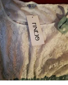 Vestido blanco con resorte falda verde con puntos blancos. Nota: El vestido podría necesitar fondo debido a que se puede transparentar.