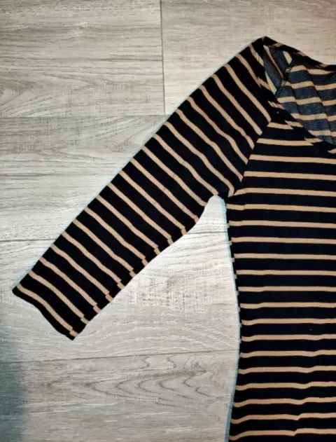 Vestido rayado café y negro. Vestido manga larga de rayas cafés y negras 🐻🐼-Talla: M-Me encanta porque la tela es gruesa (ideal para temporada de frío)-Las mangas son de 3/4-El vestido puede llegar un poco arriba de la rodilla-Se puede complementar con botas largas o tacones👌🏻