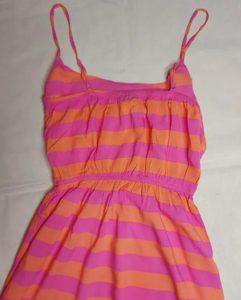 Hermoso vestido fresco con rayas horizontales, no tiene forro, es muy juvenil, tiene tirantes ajustables y colores muy padres!
