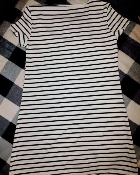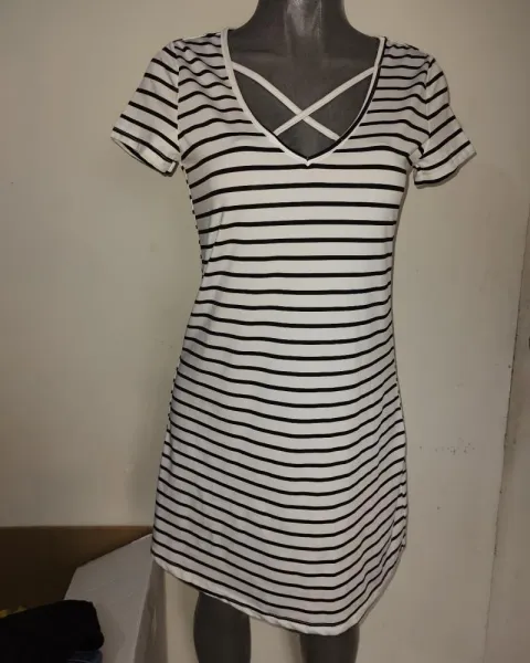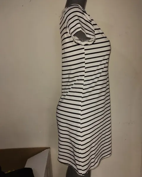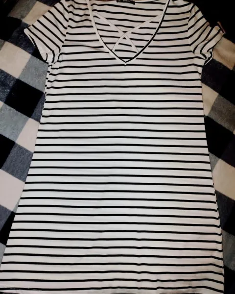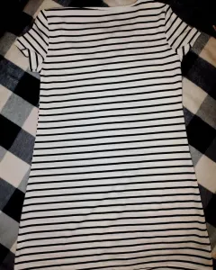Vestido rayas. Vestido holgadoRayas blanco azul marinoDetalla en el escoteManga cortaArriba de la rodilla