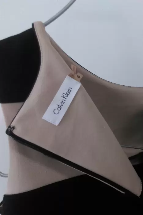 Vestido rayas Calvin Klein. Hermoso y fino vestido de rayas horizontales en color beige y negro marca Calvin Klein. Diseño en corte semi ajustado a tu figura, con cintura marcada y sin mangas. Con cierre en espalda. Hecho de tela gruesa ajustable. Sin forro.Tela: 77% poliéster, 20% rayón y 3% espandexTalla 6. ChicaMedidasPecho 94 cm ajusta hasta 100 cmCintura 84 cm ajusta hasta 95 cmCadera 100 cmLargo desde hombros 93 cmEn perfecto estado. Sin detalles