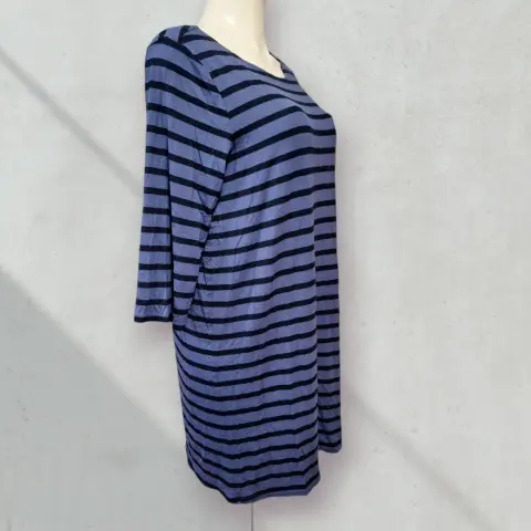 Vestido Rayas talla XL, tela licra algodón, manga 3/4, no transparenta, medidas de axila a axila 54cm, Cintura 58cm, largo 90cm. Si estíra