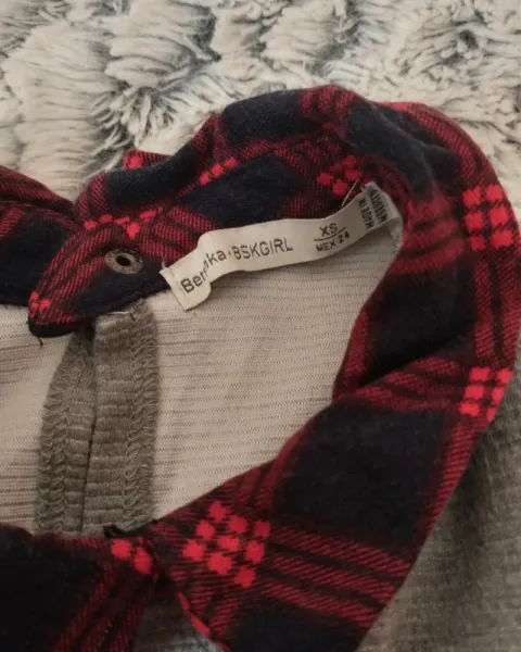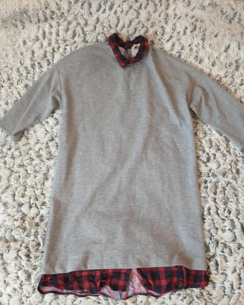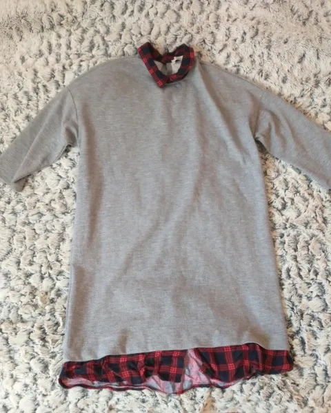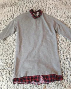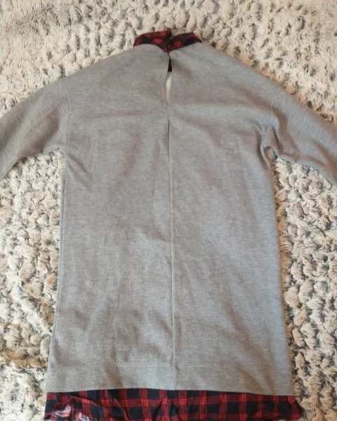 Vestido corto, simula tener una camisa en su interior, luce muy lindo, y es calientito, lo usé aproximadamente cuatro veces, está en perfectas condiciones.