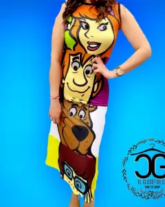 💥Vestido recto de tus personajes favoritos, UNITALLA, queda hasta un XL ya que estira, trae unos brillantitos en los ojos de cada personaje que le da un toque muy original y hermoso🥰