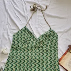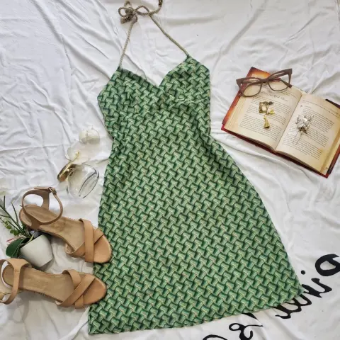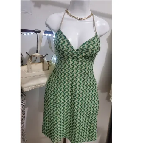 Vestido retro corto verde. Vestido casual strech,con escote en V, se amarra en el cuello