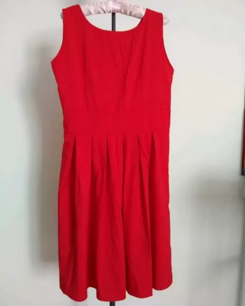 Vestido estilo pin up completamente nuevo. La tela es ligera y con mucho vuelo en la falda. Tiene cierre lateral oculto.PECHO: 51 cm de axila a axilaCINTURA: 42 cmLARGO: 102 cmSe le cayo la etiqueta pero nunca se usó.