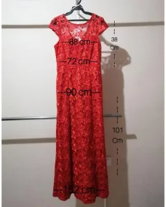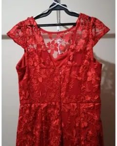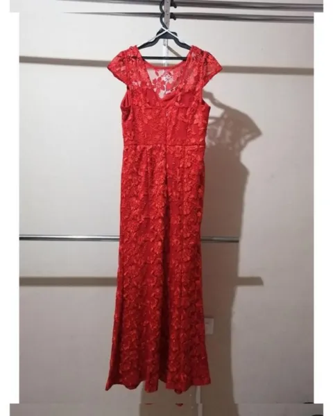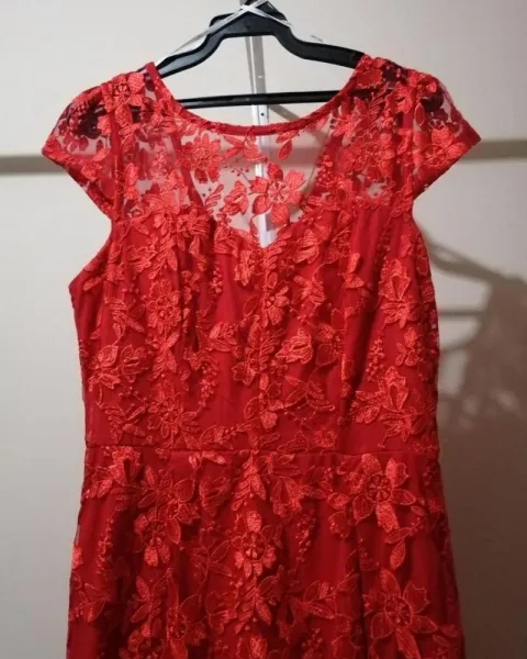 Lindo vestido de encaje color rojoEl encaje no estira así que es fiel a su tallaEn la última foto están las medidas exactas