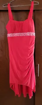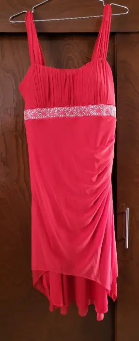 Vestido rojo. Vestido rojo para fiesta, con detalle de piedras en la cintura,