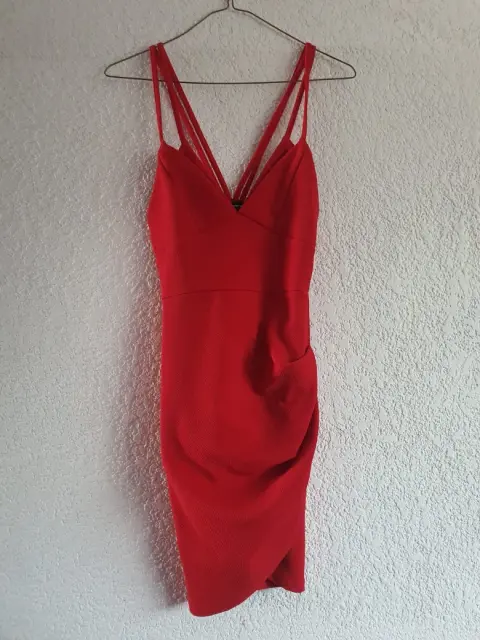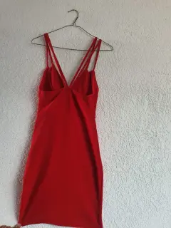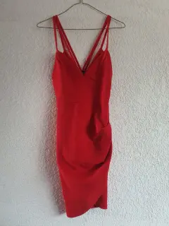 Vestido rojo. Vestido de fiesta Se amolda bonito al cuerpo El escote luce muy bonito No tiene ningún detalle
