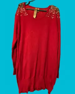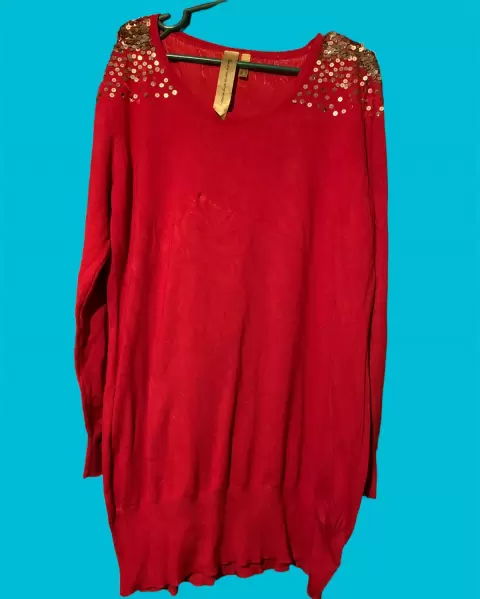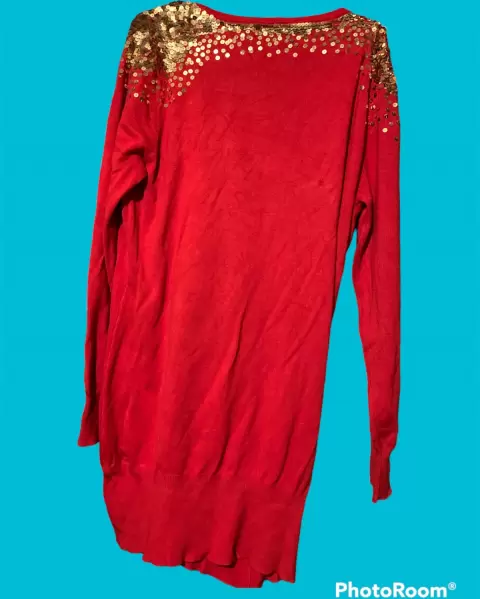 Vestido rojo con lentejuelas en los hombros, en perfecto estado, sin detalles.