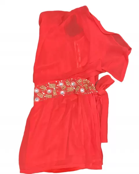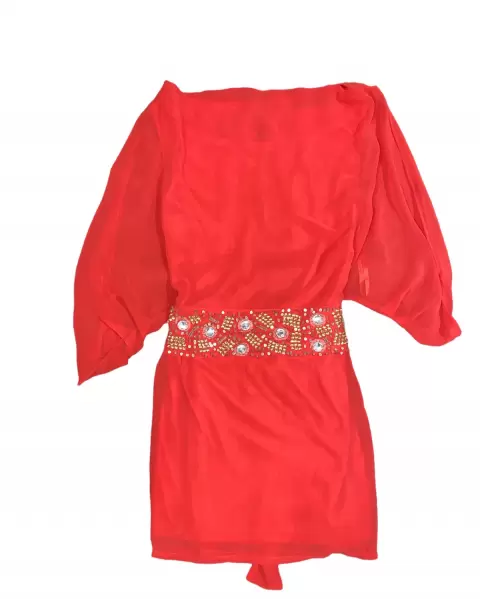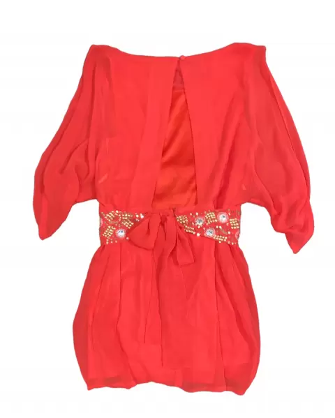Vestido color rojo con detalle de piedras a la altura de la cintura talla S muy cómodo