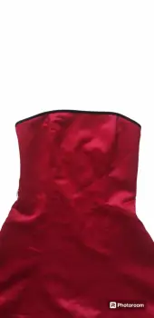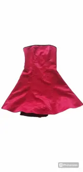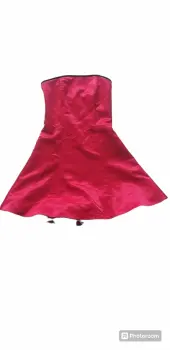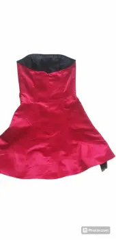 Vestido rojo corto de satin. Hermoso vestido corte A princesa.😍Es de satín, corto esta en perfecto estado, se usó para una graduación.Es de marcs Jessika McClintock.Talla S/M.Sin hombros y con un coqueto diseño en el pecho.
