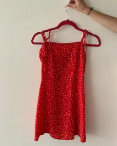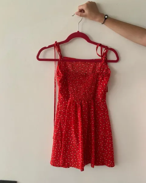 Vestido rojo de shein. Vestido de tirantes fruncido trasero de hombros con cordón con estampado floral de margarita