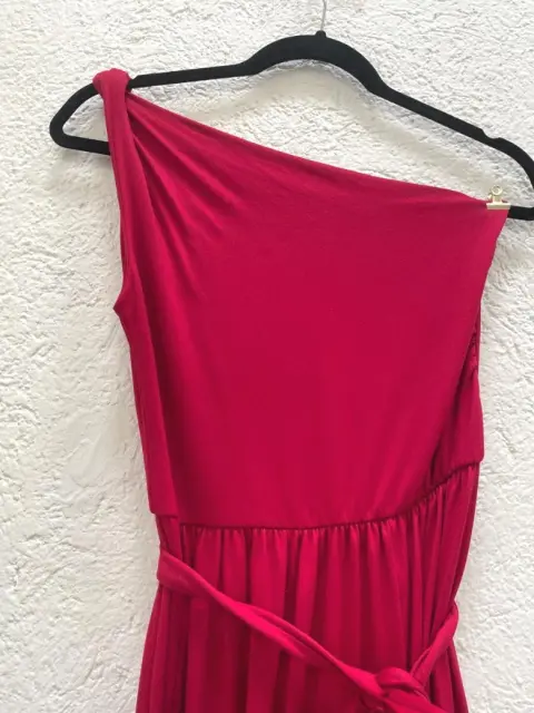 Vestido rojo de un hombro.. Bonito vestido color rojo de un hombro, con una abertura en la pierna izquierda y un lazo en la cintura.