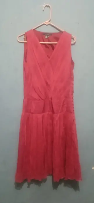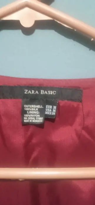 Tela muy fresca, vestido rojo sin mangas, talla Mediana.100% Seda 100% Rayón (Fondo)Zara Basic. Cómo nuevo, no tiene detalles