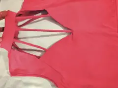 Sé amolda al cuerpo corto color rojo tiene abertura cruzada en la parte de enfrente en la etiqueta dice talla 3 pero es mediana estira la tela