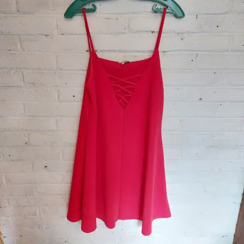 Vestido rojo escote de tiras. Vestido rojo escote de tirasTalla M pero queda a GCorte A amplioMuy cómodoEscote Sexy con tirasTela gruesa con buena caída