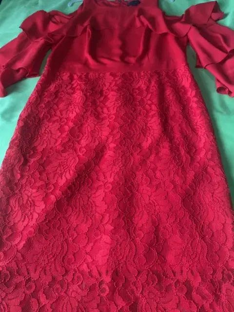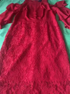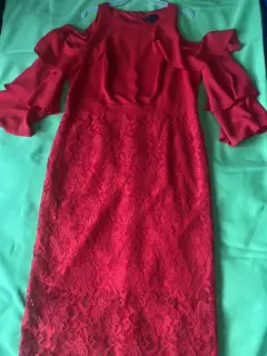 Vestido rojo fiesta o casual. Vestido rojo marca Thalía sodi , manga coqueta con hombro descubierto .