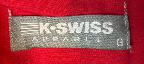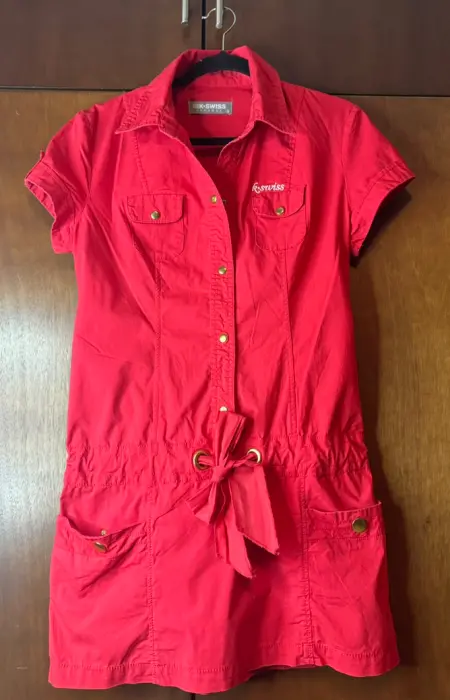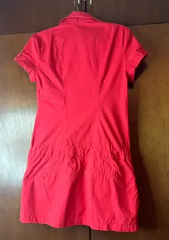 Vestido Rojo K-Swiss. Vestido rojo corto, con botones para cerrar enfrente, ajustable en la cintura, bolsas enfrente, manga corta, Talla: Grande un poco reducido,de uso.