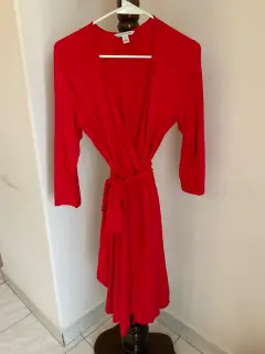 Vestido Rojo Pretty Woman. Marca Banana Republic Talla Mediana 8-10 Material algodón y Spandex, vestido cruzado manga 3/4