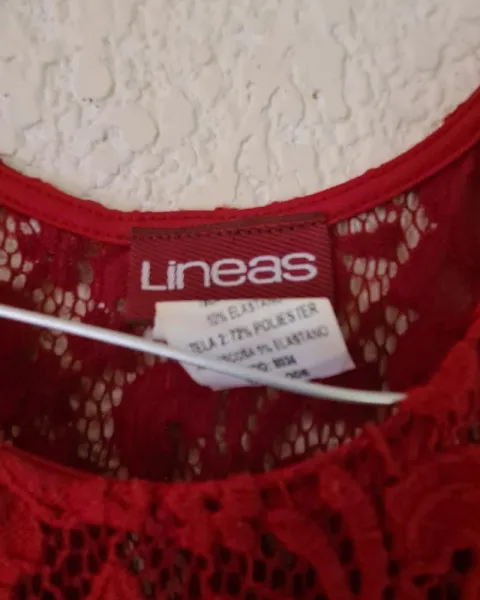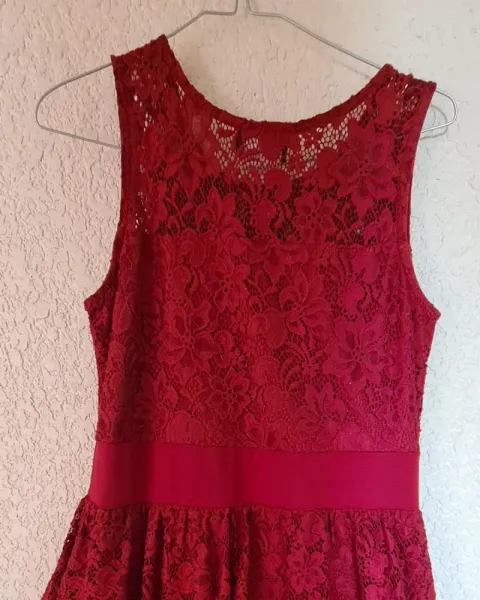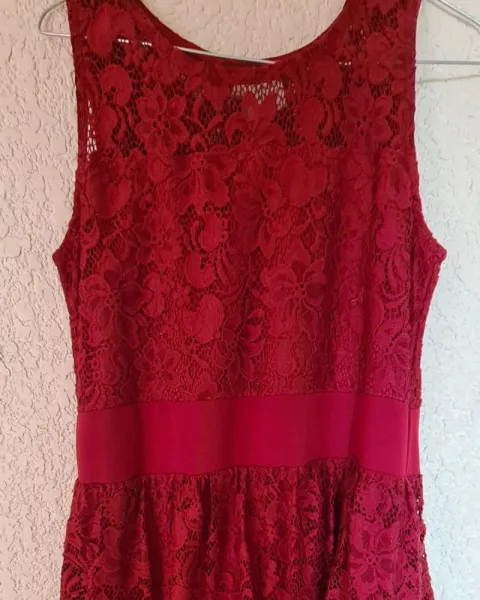 Vestido rojo sin manga calado. Vestido rojo sin manga, de algodón y detalle de cinturón, cintura 68 cm, es strecht