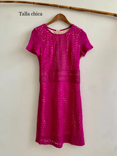 Vestido rosa, tiene forro por dentro y por fuera tiene manguita corta, sin detalles, talla chica.🙌🏻